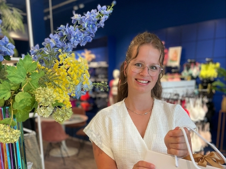 In het weekend werk ik met veel plezier bij Qulotte. Ik help klanten graag, zorg voor een fijne sfeer en maak van elke aankoop iets moois. Uiteraard maak ik met liefde een heerlijk kopje koffie, thee of een fris drankje klaar.